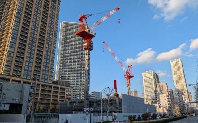 中央区 低層階の鉄骨が見えていた、48階181m「セントラルガーデン月島ザタワー」(月島三丁目南地区第一種市街地再開発事業)の様子 2026年2月22日撮影