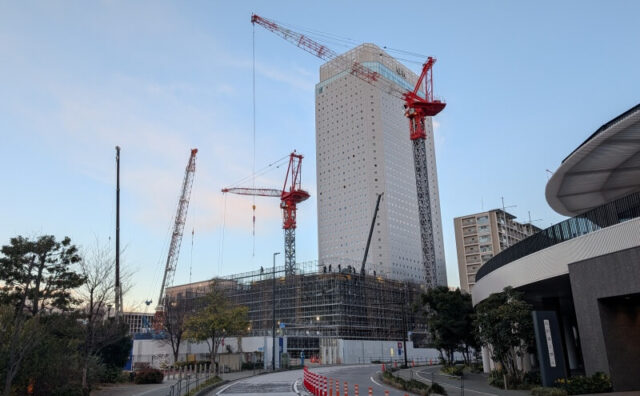 2025年12月下旬撮影です。「アパホテル&リゾート〈横浜ベイタワー〉」の西側の敷地で建設中の、40階150m「ブランズタワー横浜北仲」(北仲通北地区B-1地区計画)の様子です。地上部の鉄骨が出現していて、4階付近を施工中でした。現地の様子...