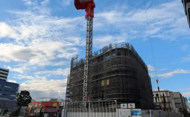 住宅 6階付近を施工中の、34階124m「パークタワー品川天王洲」((仮称)品川区東品川2丁目計画)の様子 2025年12月下旬撮影