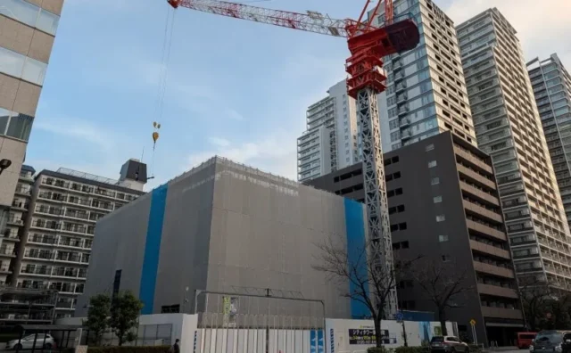 住宅 地上部が見えていた、34階117m「シティタワー東京田町」((仮称)芝浦2丁目計画新築工事)の様子 2025年12月下旬撮影