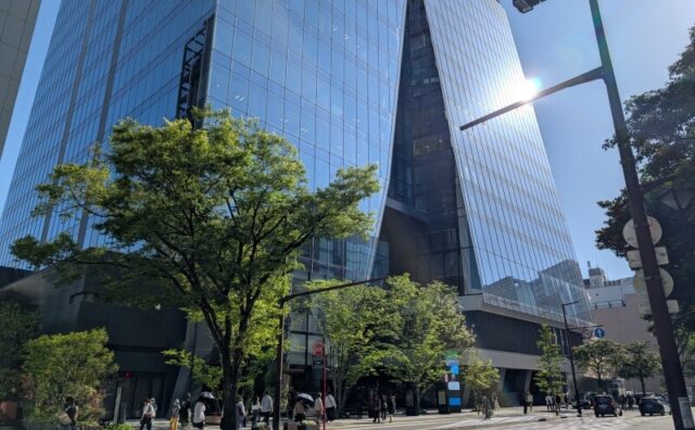 2025年12月10日撮影です。日本で一番高いオフィスビルとなる、62階385m「Torch Tower(トーチタワー)」(常盤橋街区再開発プロジェクト B棟)の様子です。現地の様子「サピアタワー」から建物の南西側を見た様子です。建物西側の...