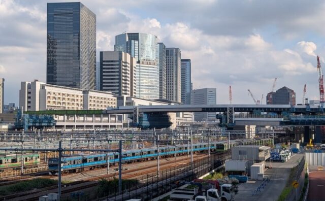 「モン タカナワ: ザ ミュージアム オブ ナラティブズ」と、44階172m「高輪ゲートウェイシティレジデンス」の様子 2025年11月30日撮影