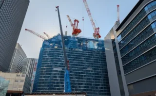 2015年2月:もうすぐ上棟しそうな、140m級「(仮称)新鉄鋼ビル」の様子 2015年2月下旬撮影