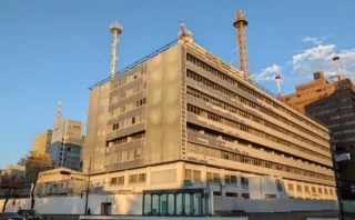 2014年9月:解体用の足場が出来てきた「逓信総合博物館(ていぱーく)」の様子 2014年9月19日撮影