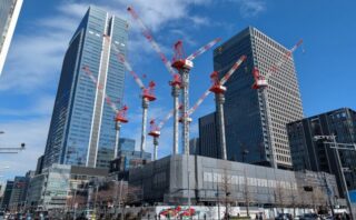 奥に見えるスカイズタワー&ガーデン(SKYZ TOWER & GARDEN)は、既に外観は完成していました。