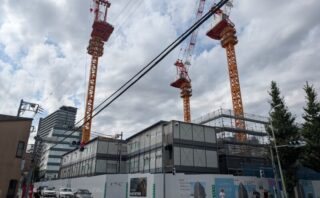 上野の不忍池の側で建設中の、36階131m「Brillia Tower (ブリリアタワー) 上野池之端」の様子です。
