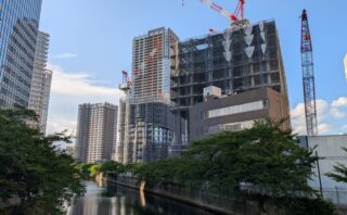 京浜運河の北側を見た様子です。橋の上の状況は分かりませんが、この辺は大体工事が終わっている感じでしょうか。