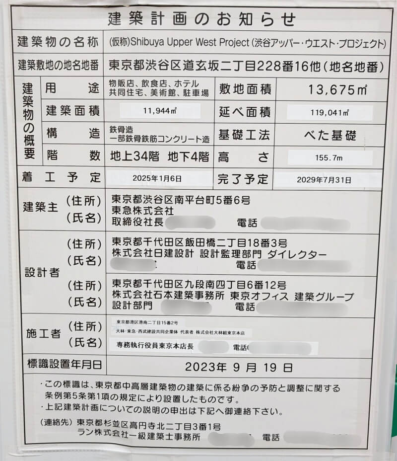 名称:(仮称)Shibuya Upper West Project(渋谷アッパー・ウエスト・プロジェクト)