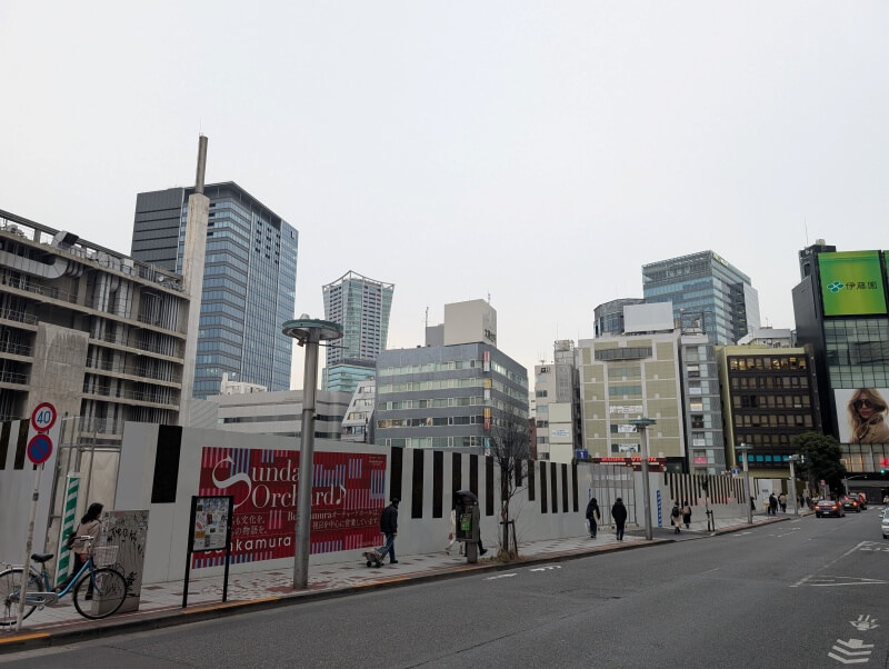 オーチャードロードの北側から、再開発の敷地を見た様子です。