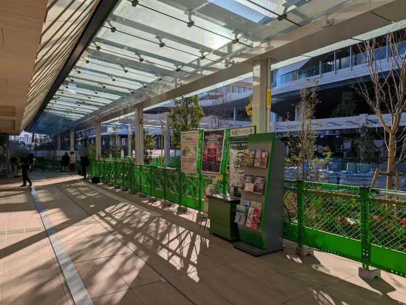 違う角度から、高輪ゲートウェイ駅前の駅前広場の北側を見た様子です。