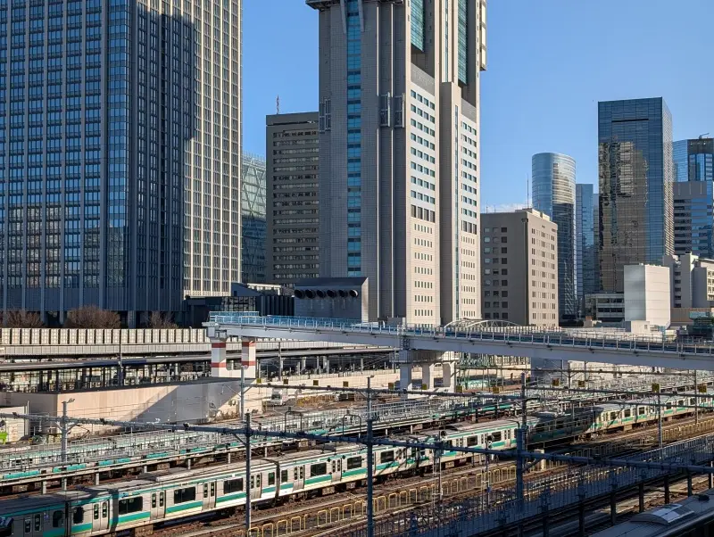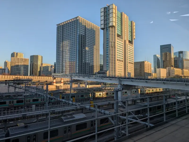 3階から、高輪ゲートウェイ駅の南側を見た様子です。