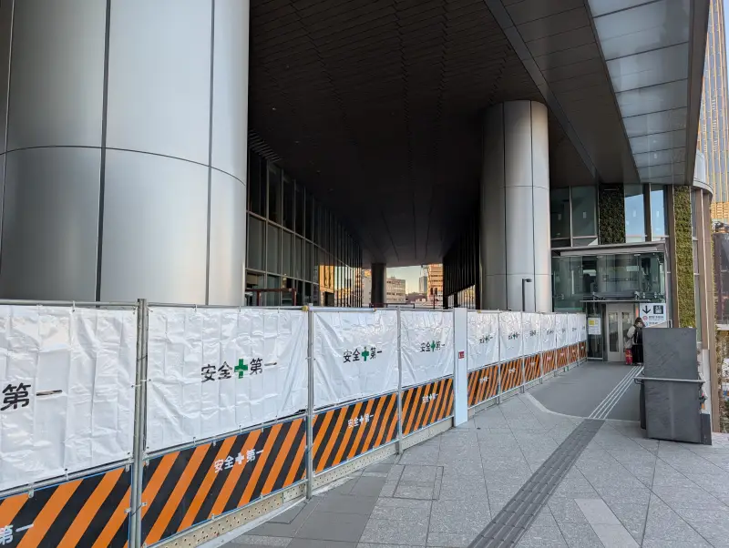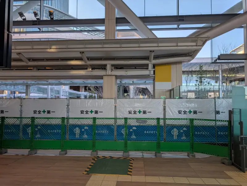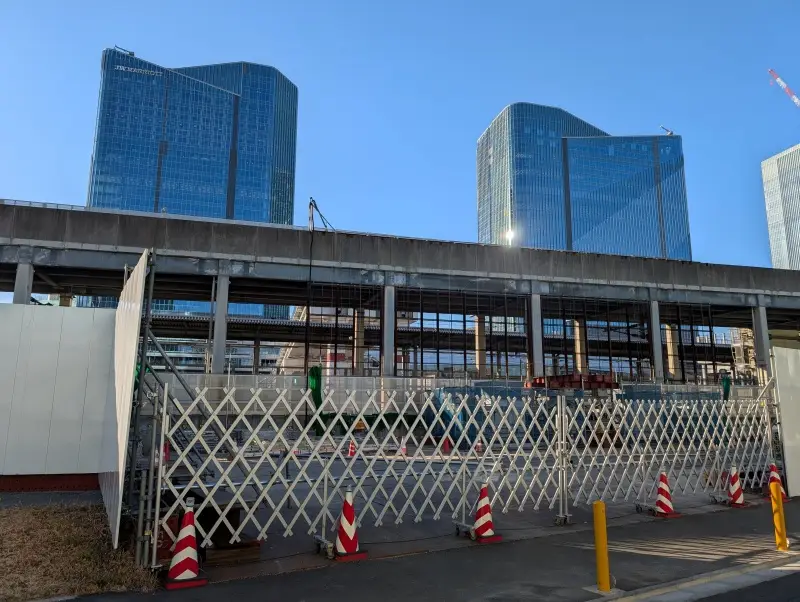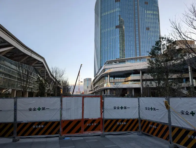 高輪ゲートウェイ駅前に再び出て、工事中の駅前広場を見た様子です。