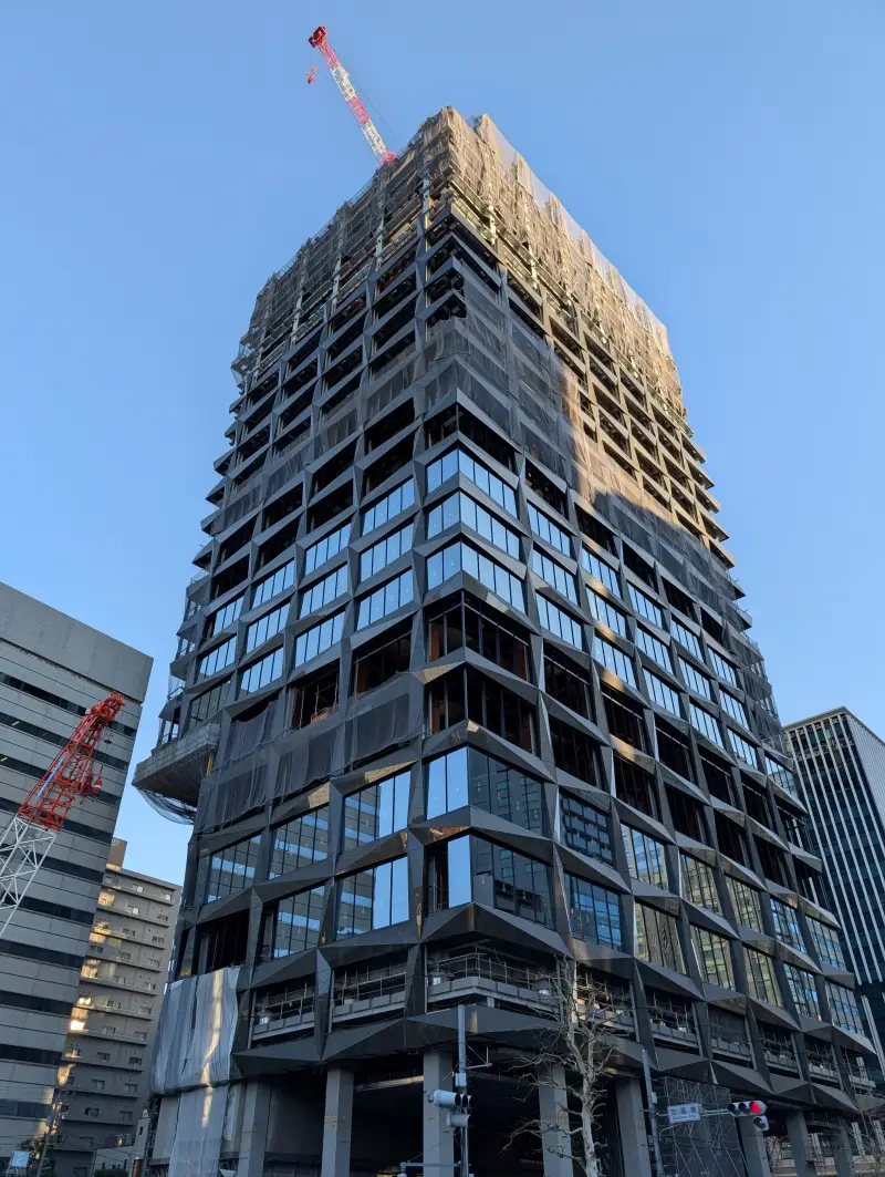 カーテンウォールの設置が進んできており、完成形が楽しみな建物の一つです。