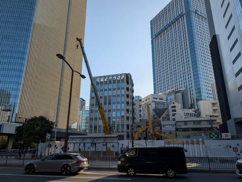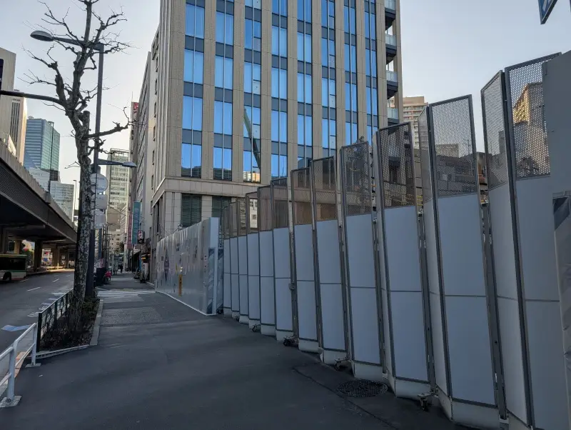 外堀通りの反対側から再開発の敷地を見た様子です。