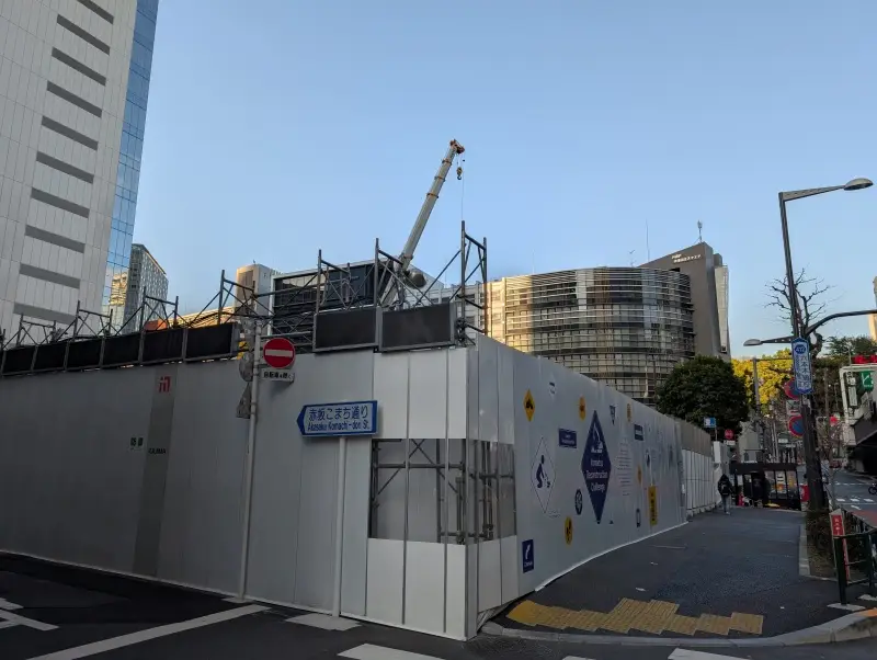 六本木通りの南側から、建替え工事の敷地を見た様子です。