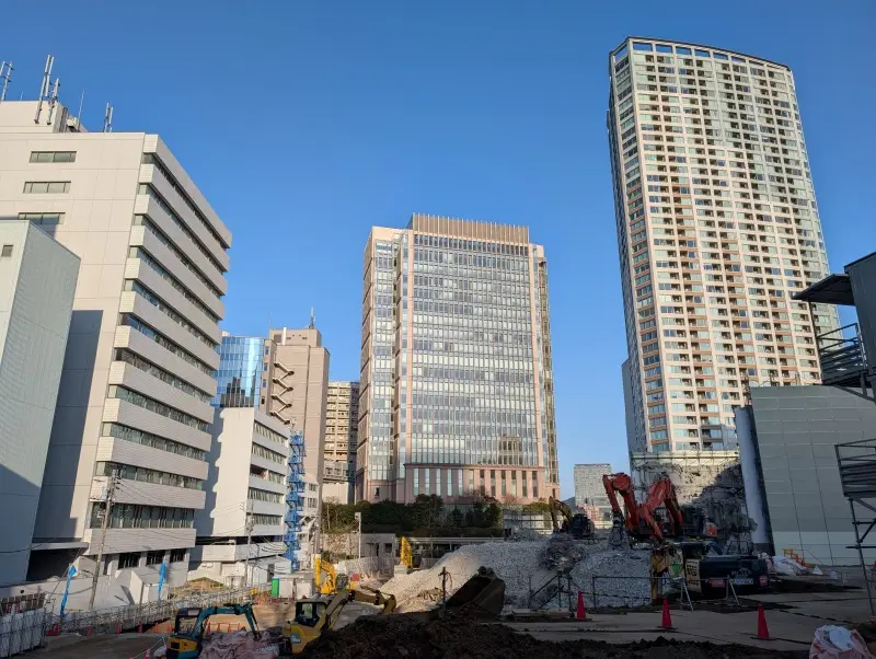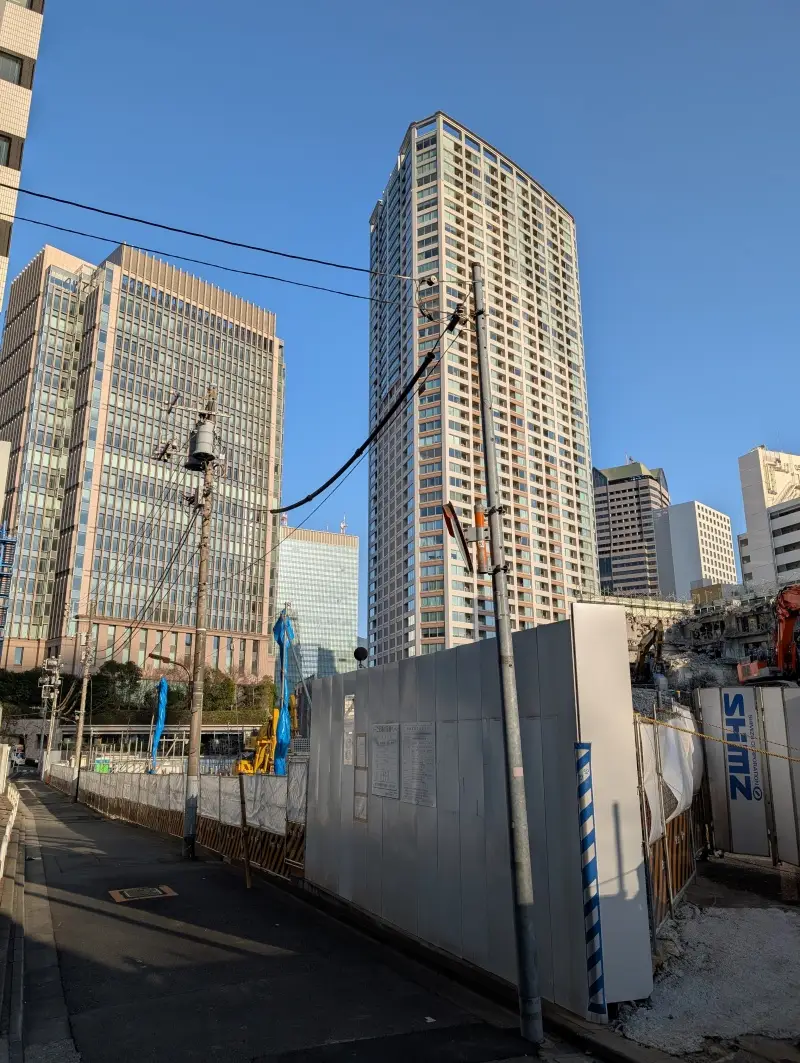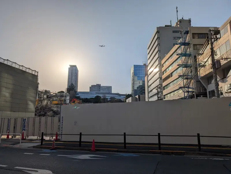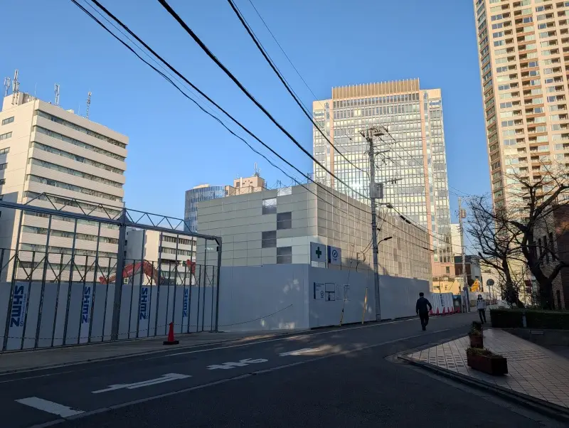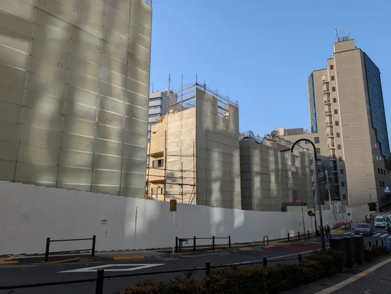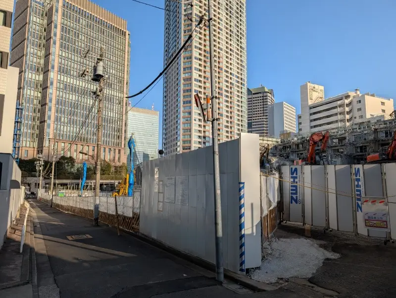 敷地の北側の路地から西側に進み、再開発の敷地を見た様子です。