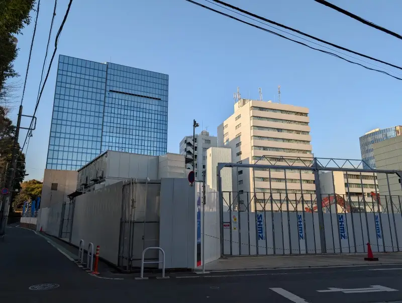 赤坂地区総合支所前交差点から、薬研坂を下りて行ったところから、再開発の敷地を見た様子です。