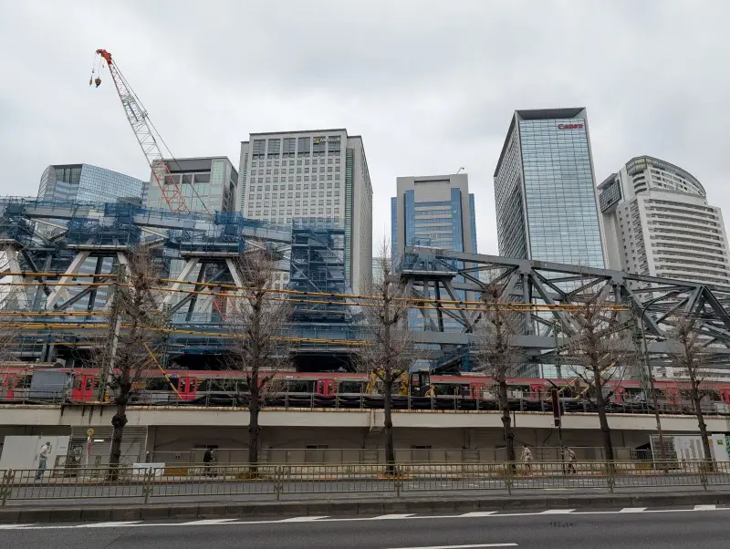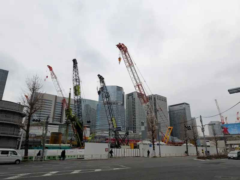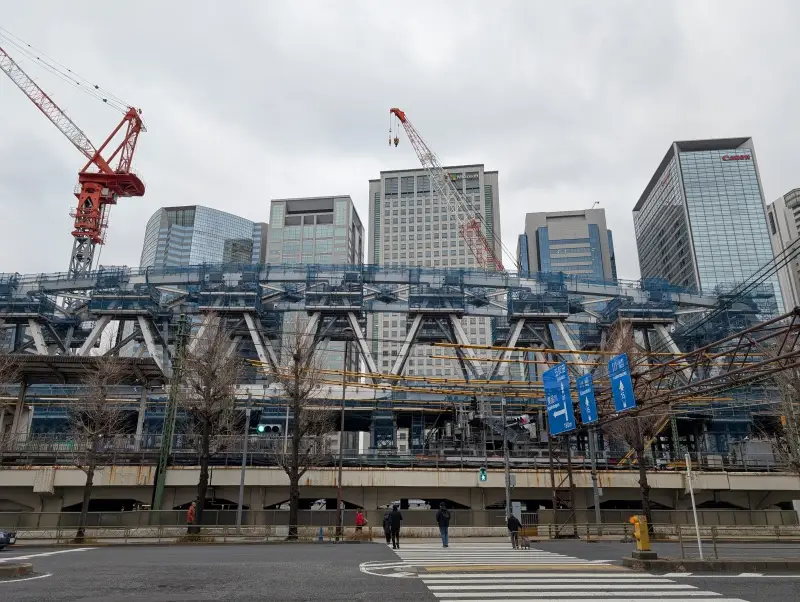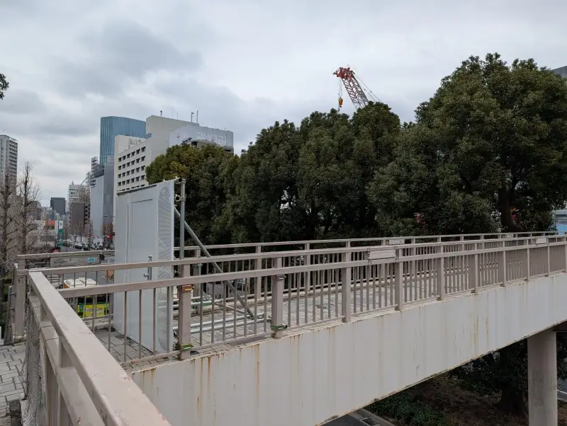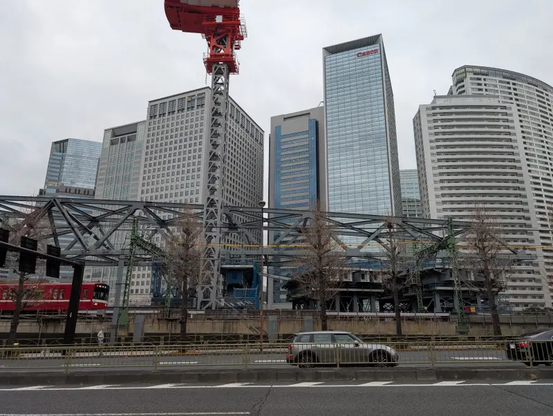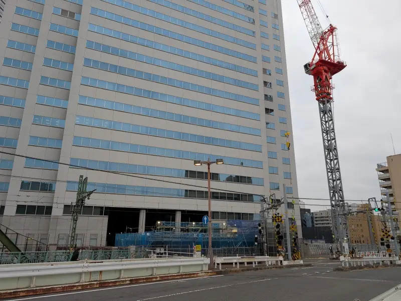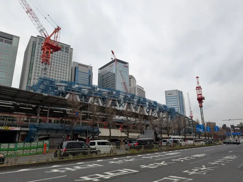 東横INN品川駅高輪口付近から、施工中の橋梁を見た様子です。