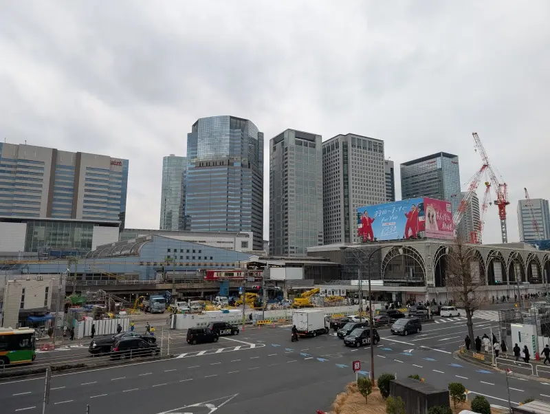 品川駅歩道橋から、品川駅を見た様子です。