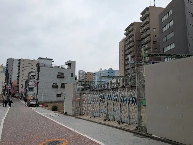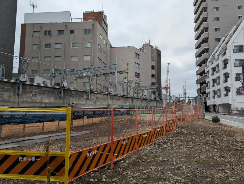 第一京浜沿いの西側には、高架化されている個所の西側にも、高架化切り替え工事用の敷地が確保されています。