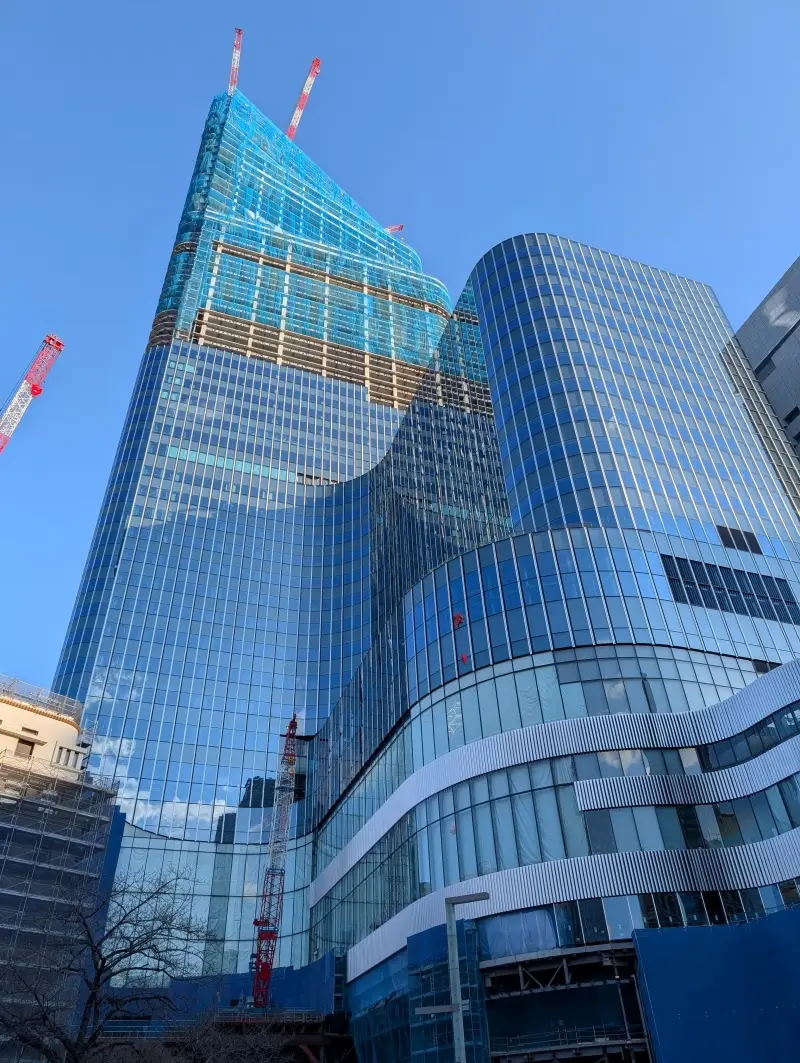 コレド日本橋の北側で再開発中の、52階283m「日本橋一丁目中地区第一種市街地再開発事業」の様子です。そろそろ上棟している感じでしょうか?