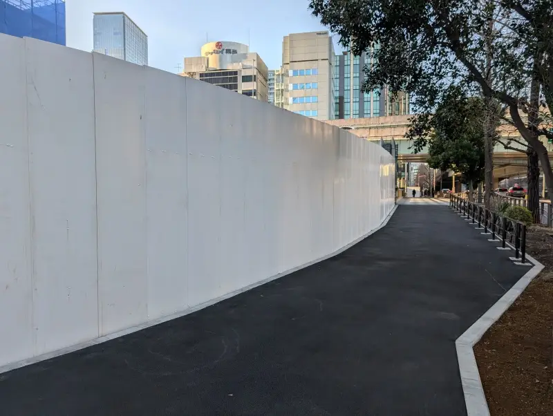 B街区傍の昭和通り沿いの歩道が整備され、階段の上り下り無しで通行出来る様になっていました。