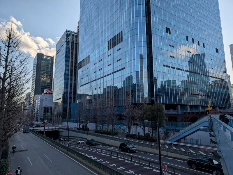 江戸橋南詰歩道橋の上からB街区側を見た様子です。