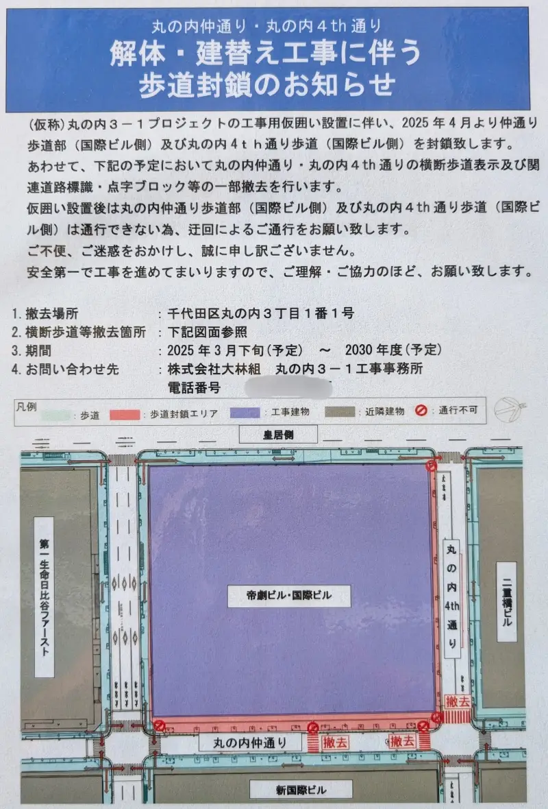帝劇ビル・国際ビル周辺の歩道も、建替え工事により一時閉鎖される予定です。