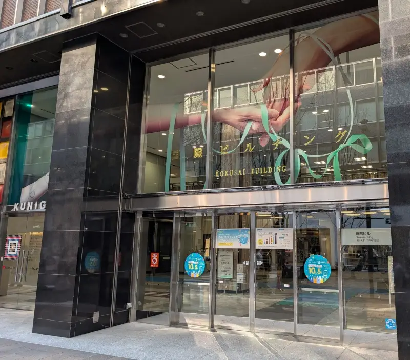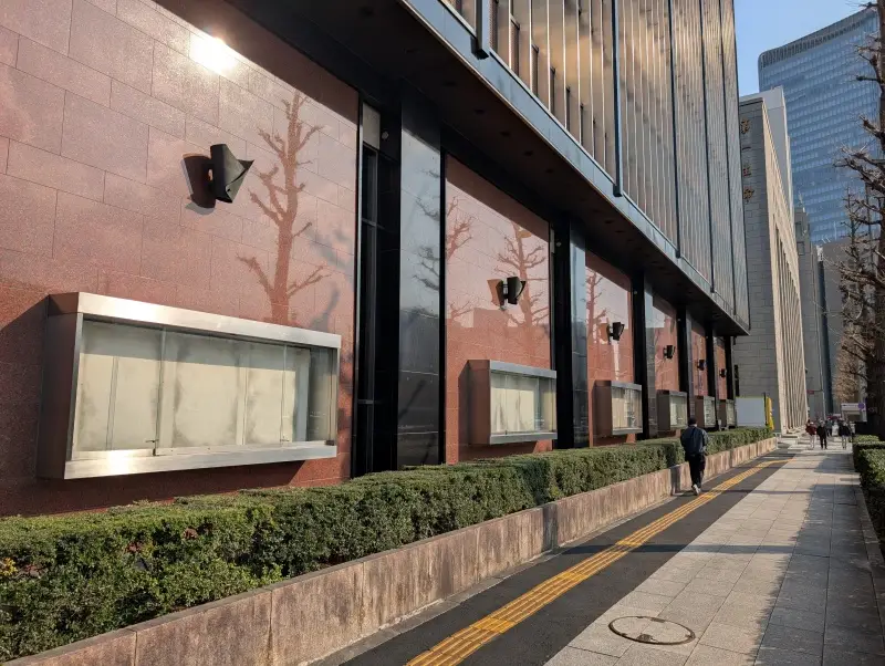 日比谷通り沿いから、建物の入口側を見た様子です。