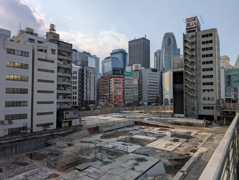 新宿サザンテラスから南街区の建設予定地を見た様子です。こちらは前回来た時と、あまり変化がない気がしました。