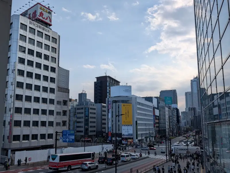 新宿エルタワー傍の歩行者デッキから、新宿駅側を見た様子です。