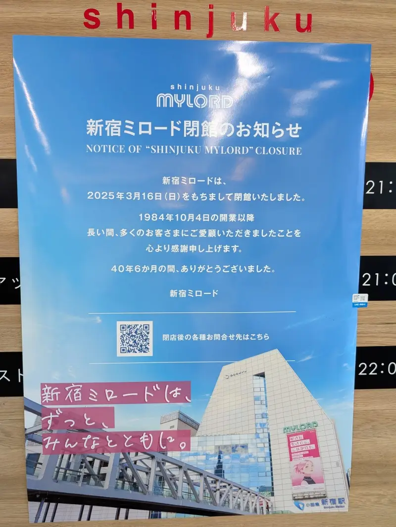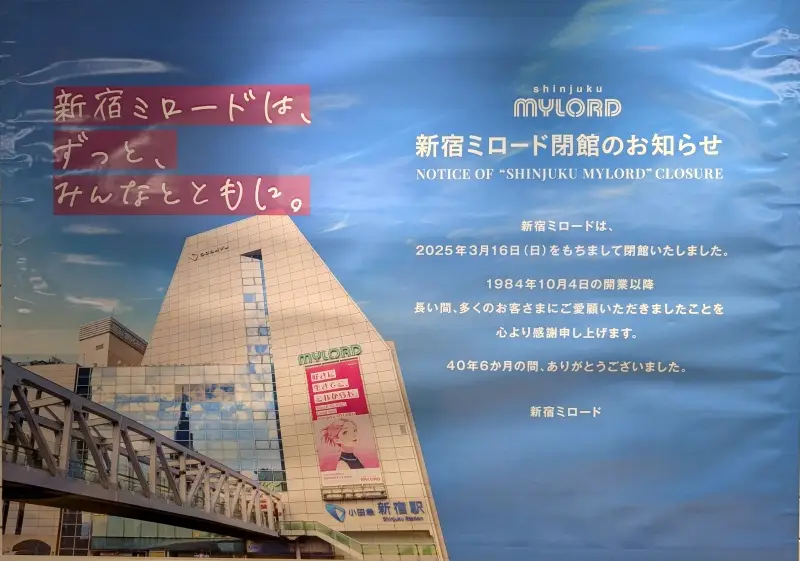 新宿駅構内では、新宿ミロード閉店のお知らせが掲示されていました。