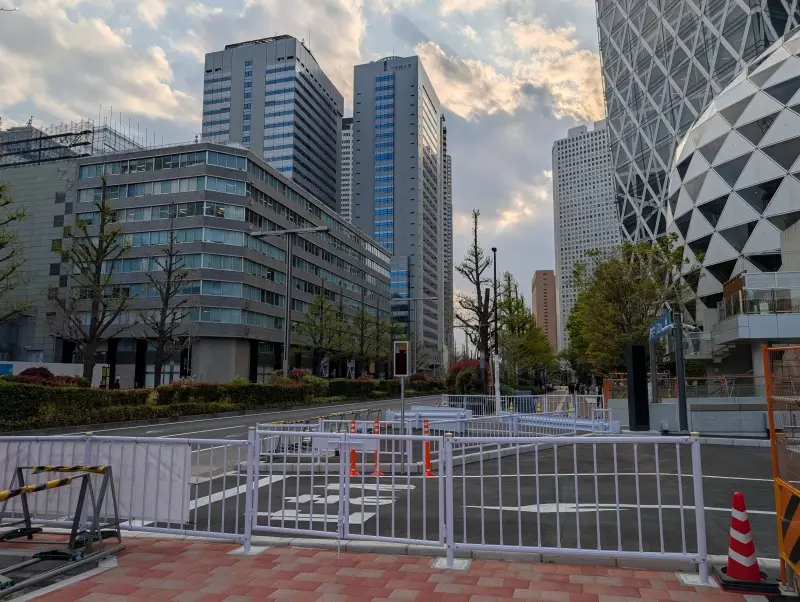 西側の中央通り沿いから、新宿駅側の歩道を見た様子です。コクーンタワーの傍を通る事により、新宿駅側に移動することができます。
