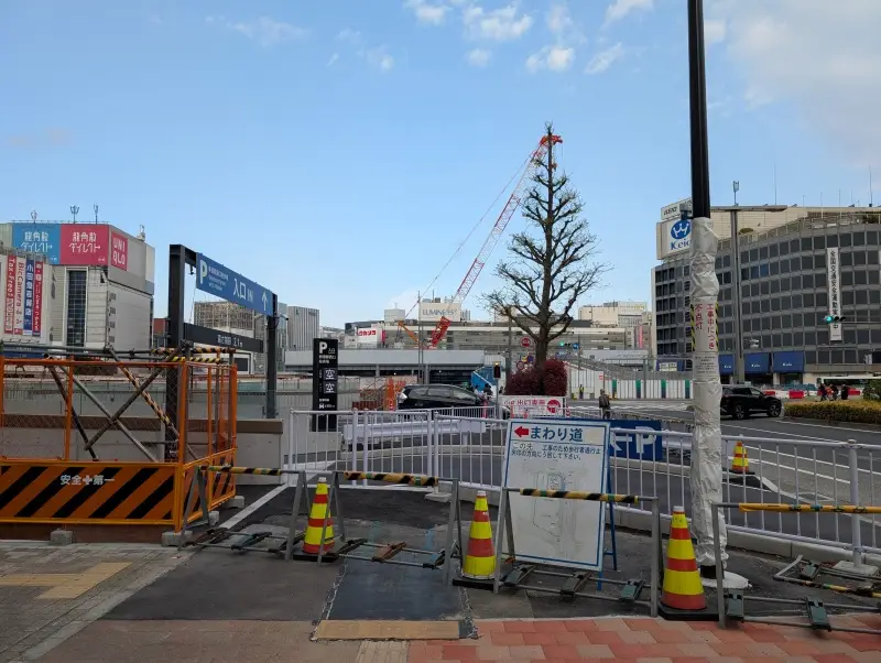 コクーンタワーの傍の歩行者デッキから見た様子です。西口の交通広場に移動する地下道が完成していました。