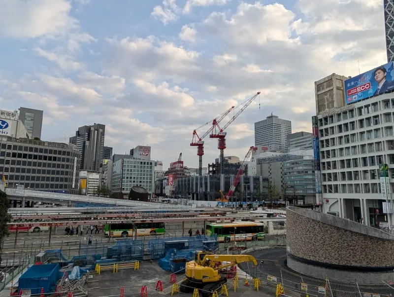 京王百貨店前付近から、再開発の敷地を見た様子です。