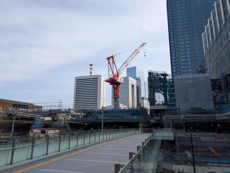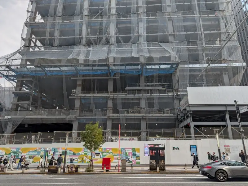 施工中のモノレール棟を見た様子です。モノレール棟の外観も、少しずつ見えて来た気がしました。