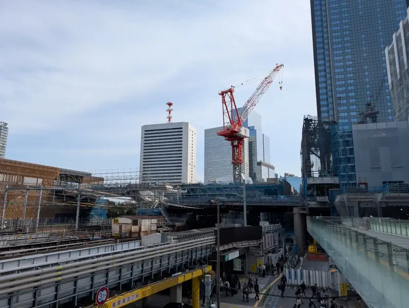 ついでに、浜松町駅改良工事の北側の東西自由通路を見た様子です。ホーム上の東西自由通路の施工が、少しずつ進んでいました。