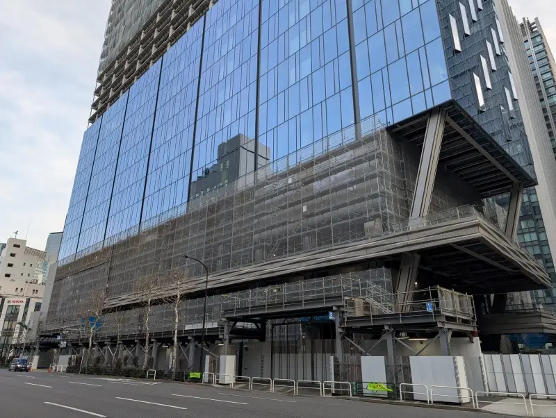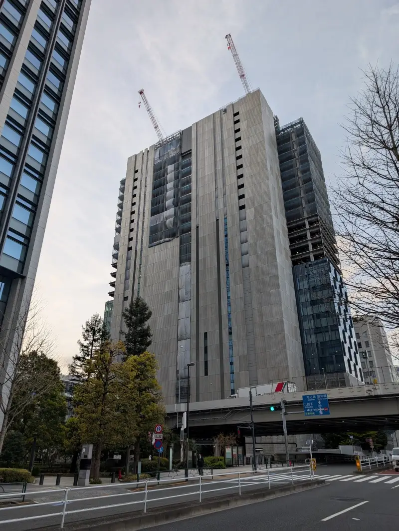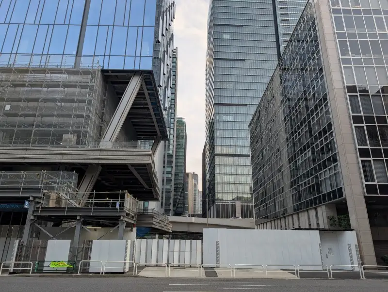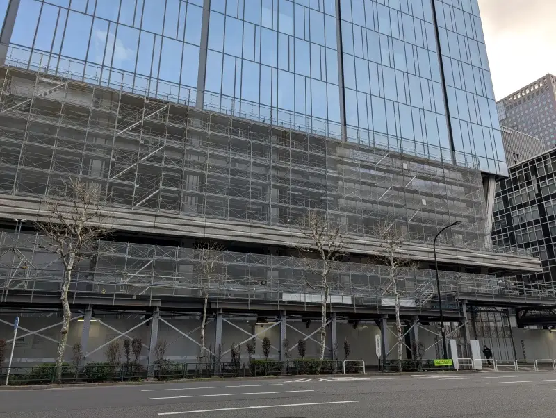 最後に、南側の「NTTコミュニケーションズ 大手町ビル本館」近くから、施行中の建物を見た様子です。