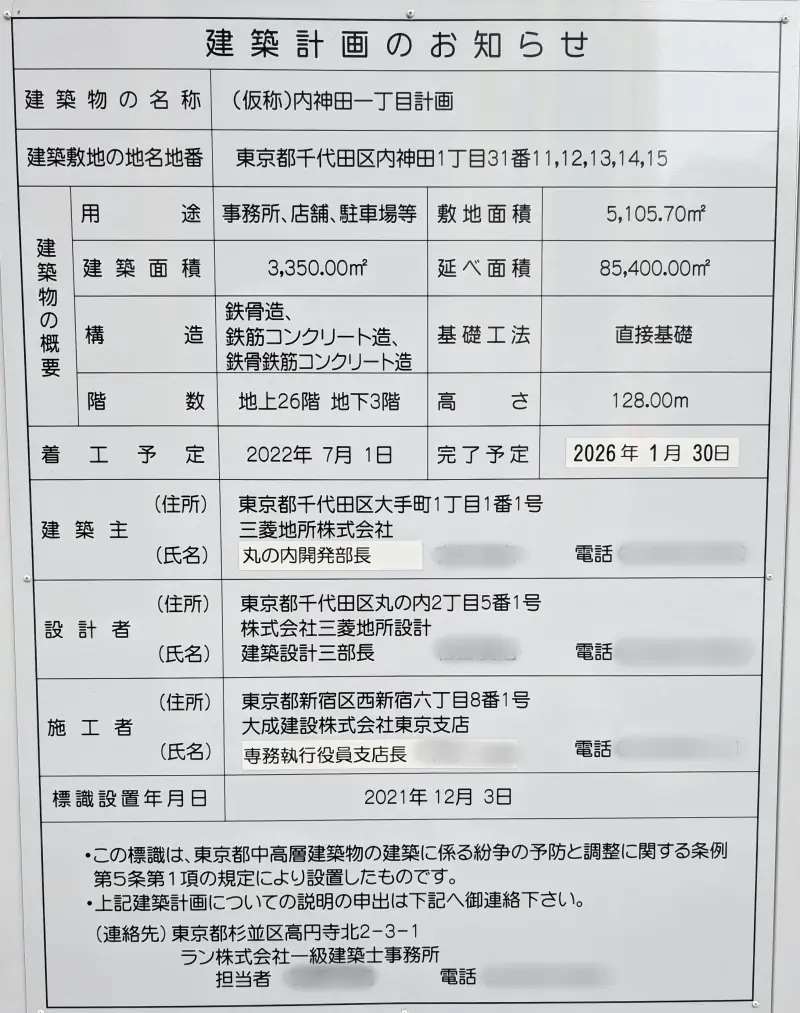 久しぶりに見に来たので、建築計画のお知らせも撮影してみました。