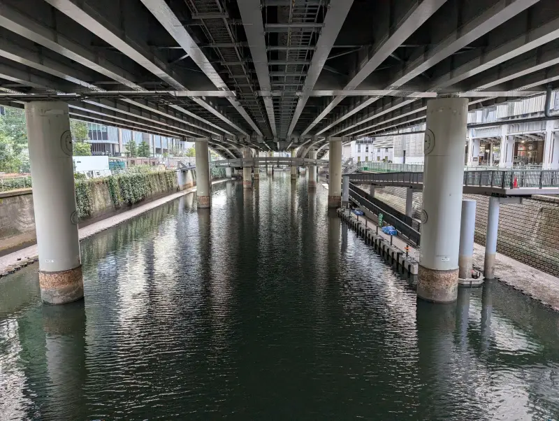 鎌倉橋から、建設中の人道橋側を見た様子です。
