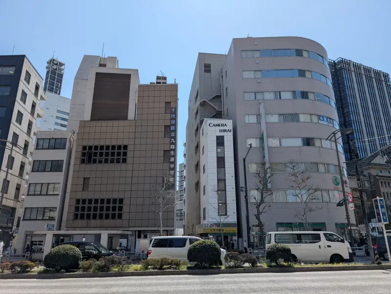 中地区を見た様子です。奥に建っている「東京堂千代田ビル」は、南地区に該当します。