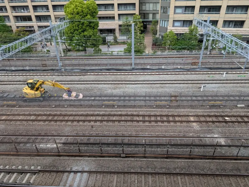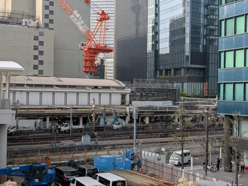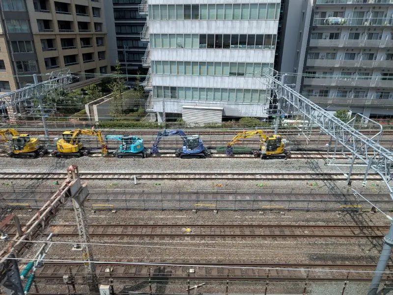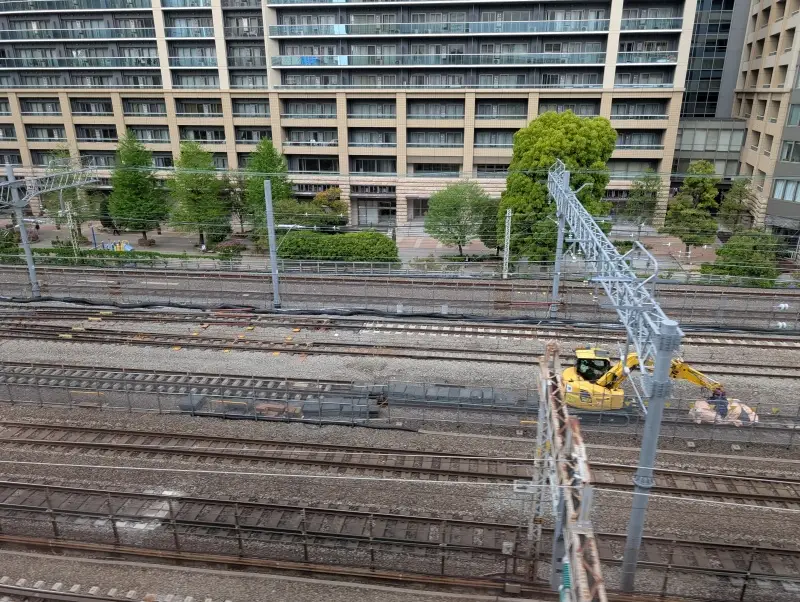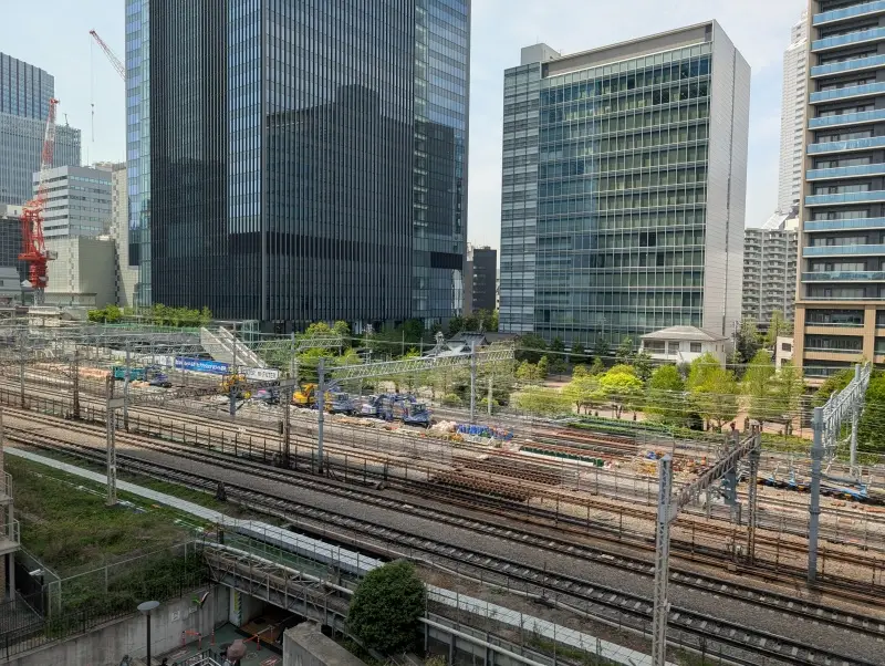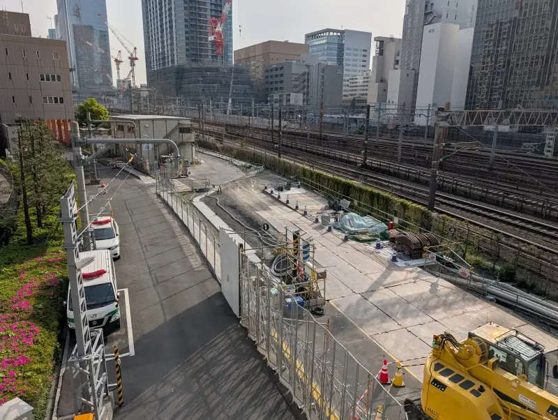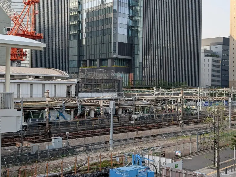 少し角度を変えて、田町駅周辺の線路切り替え工事を見た様子です。