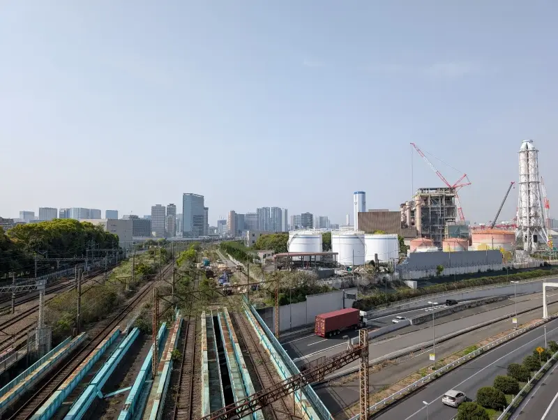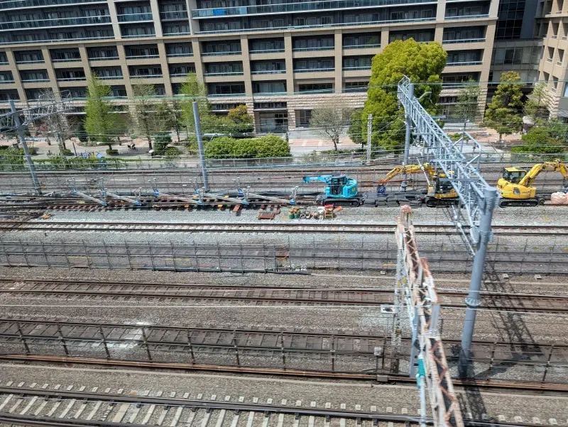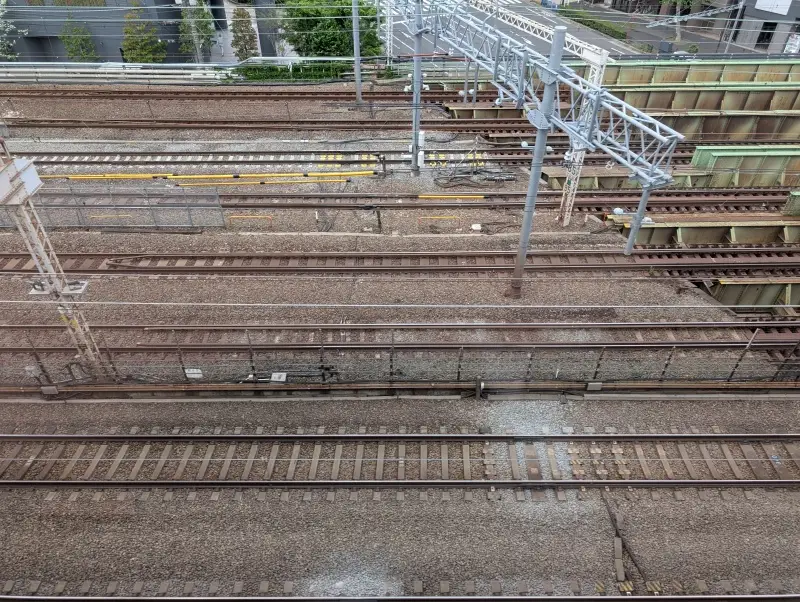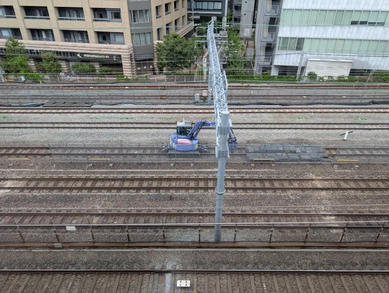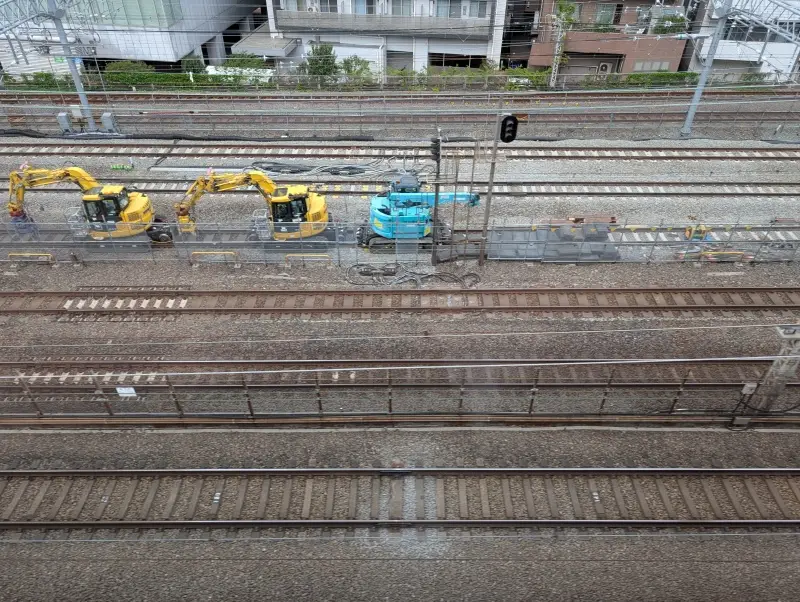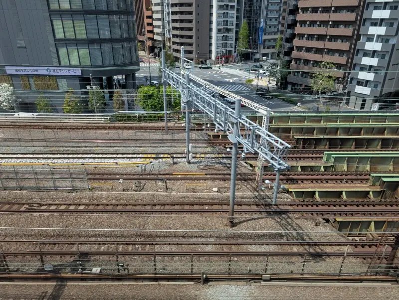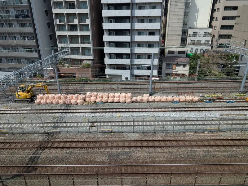 少し角度を変えて、田町駅周辺の線路切り替え工事を見た様子です。
