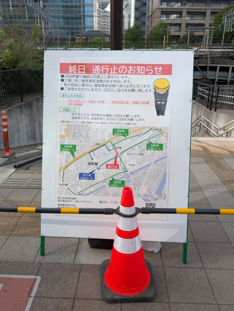 こちらは、4月19日の初電~4月20日正午まで、山手線外回りと京浜東北線を一部運休し、工事を行っていました。
