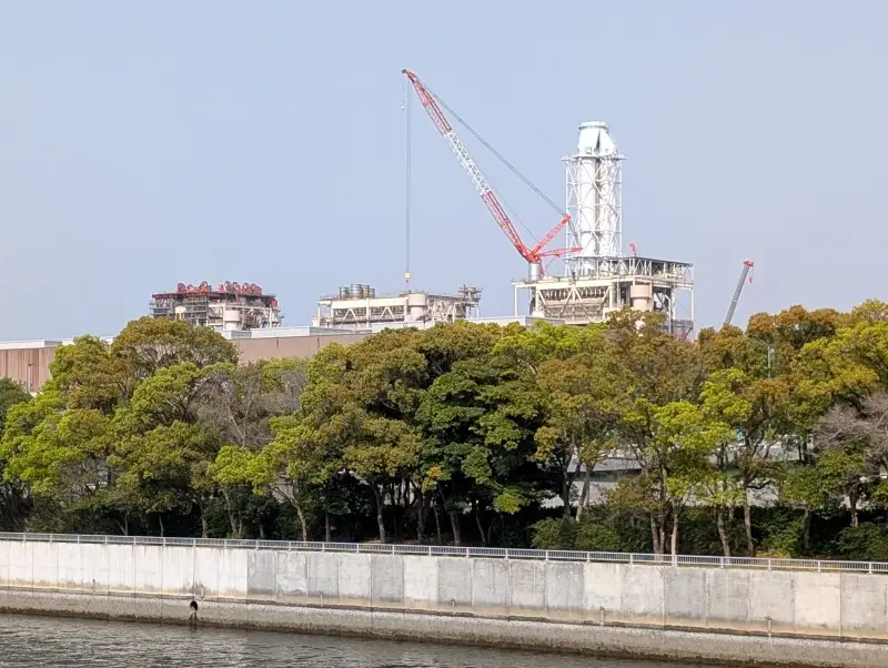 大井火力発電所の解体工事も撮影してみました。天井部分の装置が、少しずつ取り外されているのが見えました。