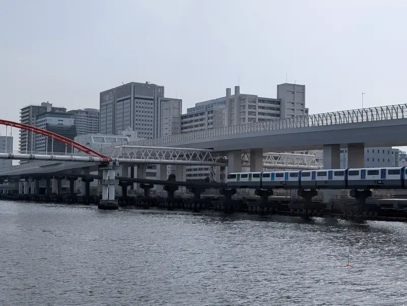 東京モノレールの車両が、大井水管橋の下をくぐり抜けて行く様子が、見ていて面白いです。