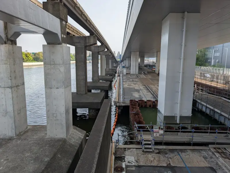 「大井北埠頭橋」から、首都高速道路の高架下の北側を見た様子です。