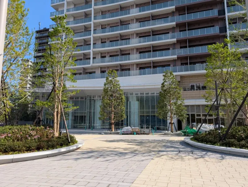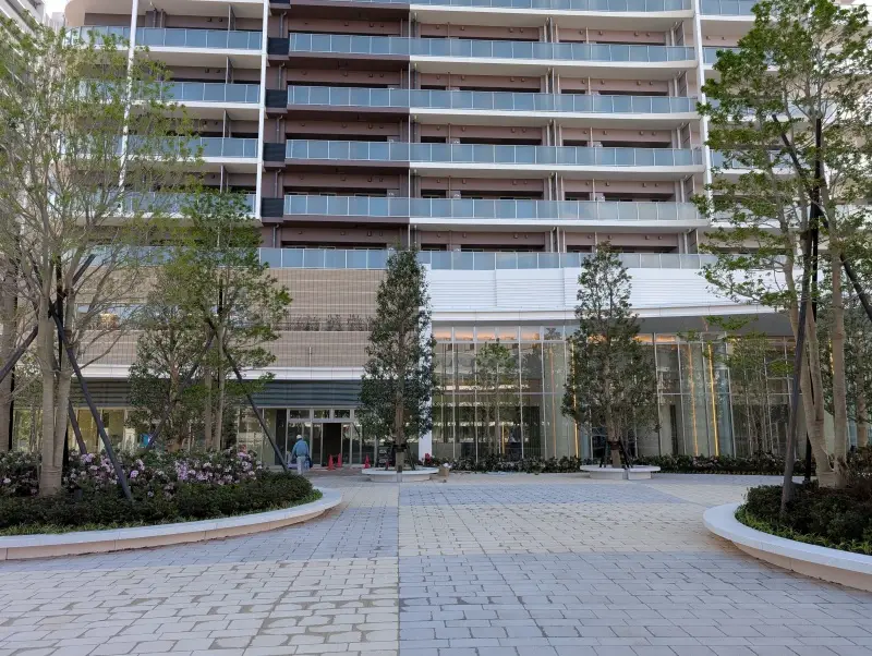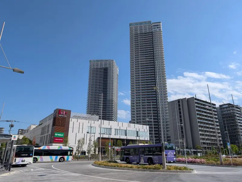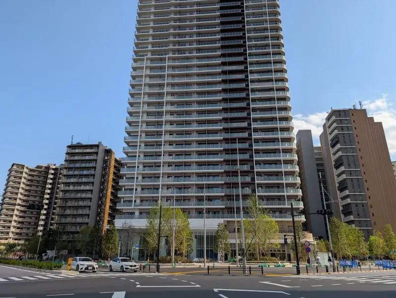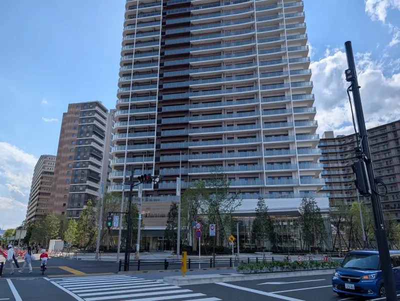 「晴海五丁目ターミナル」付近から建物を見た様子です。