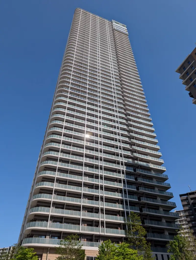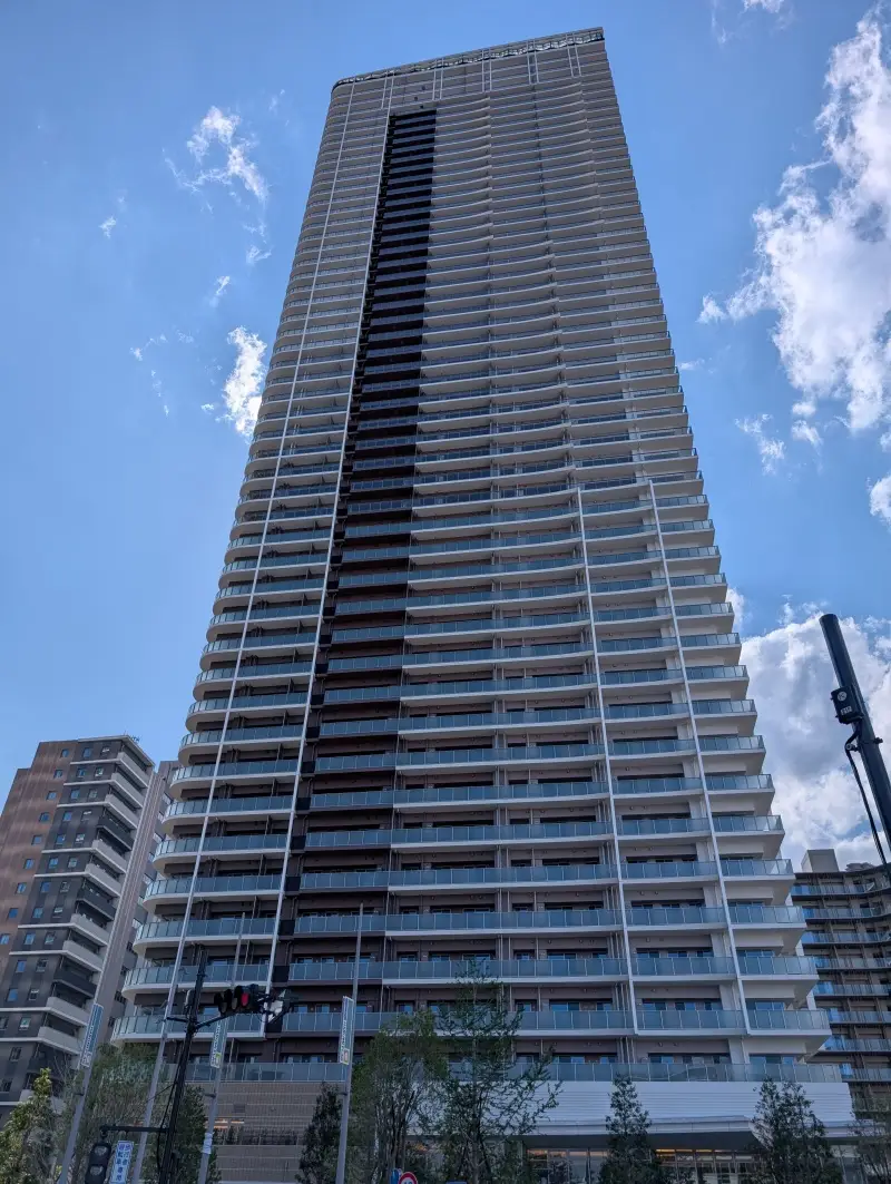 南側から、西側のSUN VILLAGEタワー棟の低層階を見た様子です。