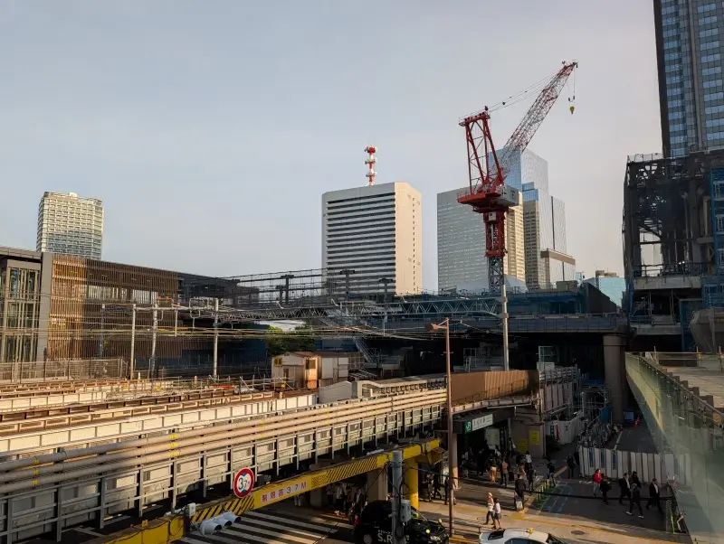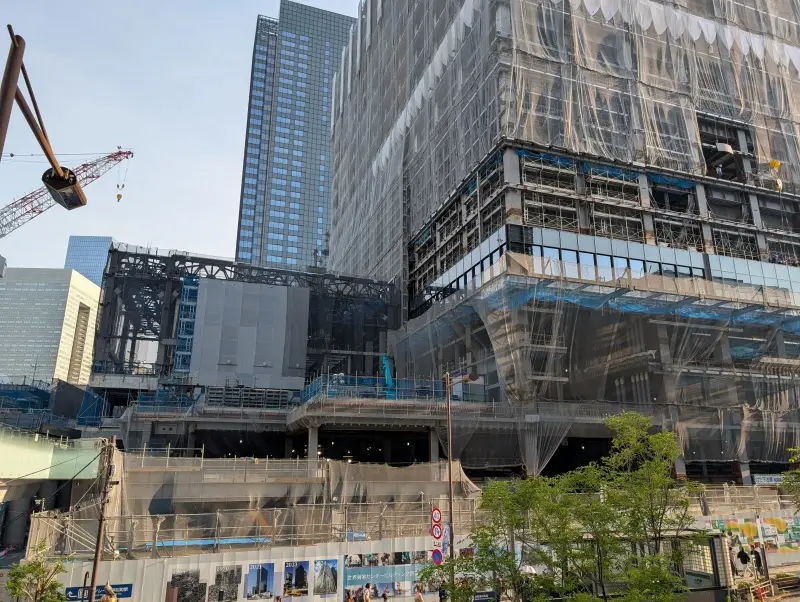 「日本生命浜松町クレアタワー」の南側と、浜松町駅が繋がる予定のエリアを見た様子です。